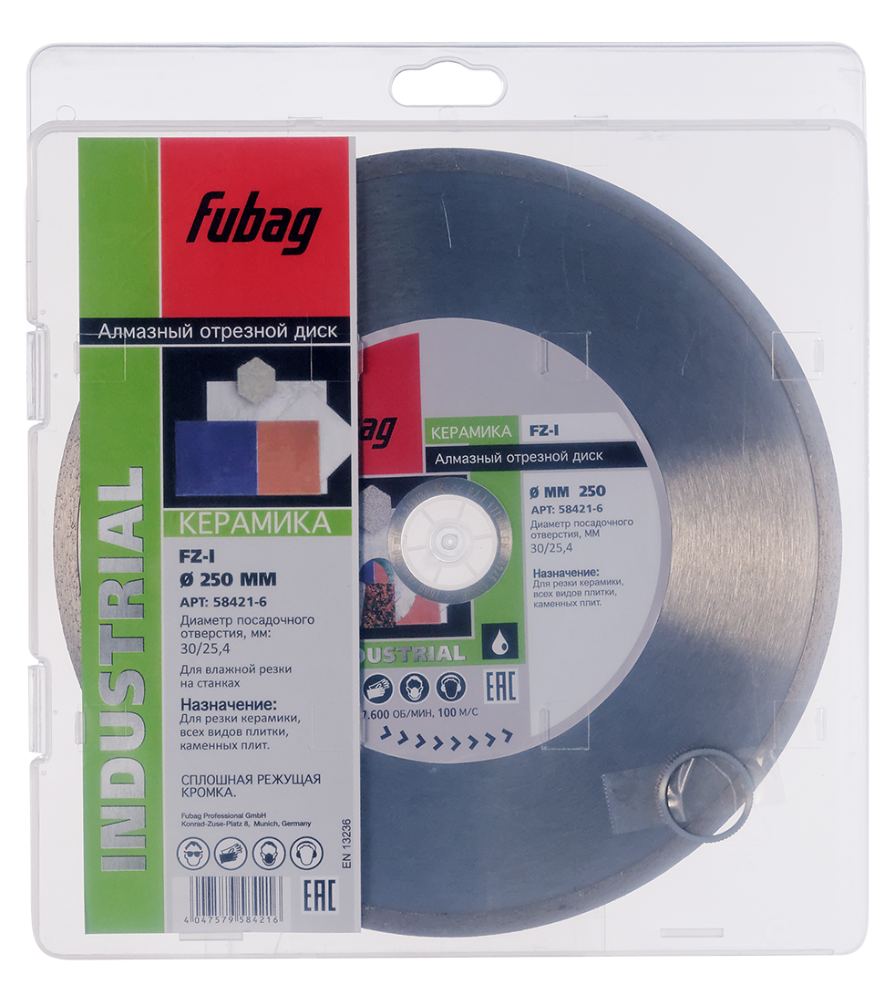 Алмазный отрезной диск FUBAG FZ-I D250 мм/ 30-25.4 мм по керамике
